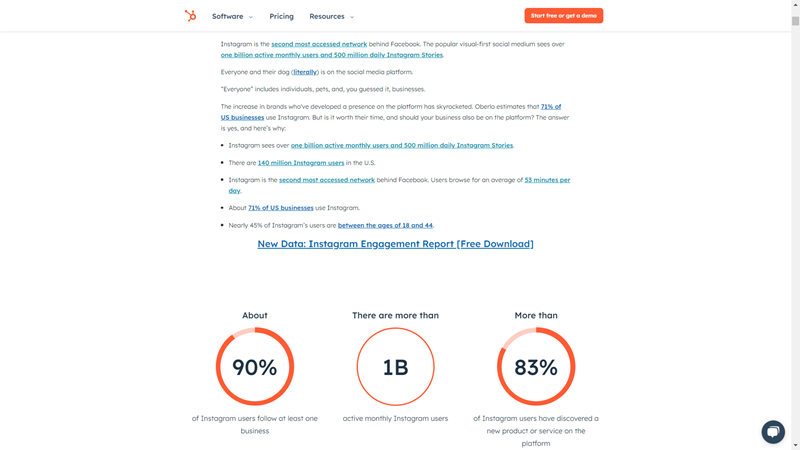 - Hubspot: A different approach, Hubspot has created long-form content i.e., one humongous piece detailing all there is to know about Instagram marketing. As you may guess by now, someone typing “instagram marketing” would likely find this page via Google’s search results.