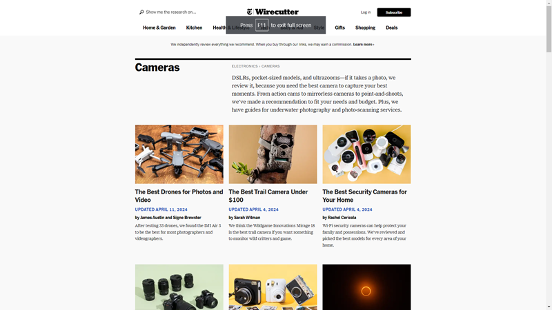 - NY Times | Wirecutter: As above, The NY Times has created a content hub on cameras with extensive guides on camera-related topics within e.g. the top 3 instant cameras and how to photograph a solar eclipse. Usually, people in the USA searching “best digital camera” will find this page on Google.